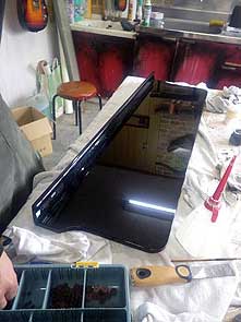 底板を取り外したらペダル窓磨きとペダル窓クロスの交換 ピアノ全体的に汚れがこびりついている