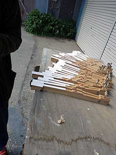 けん盤木口カット 細部まで磨き上げる 埃は隅々まできれいに取り去りたい