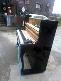 ピアノ裏側も埃がたまる、ここは一般家庭でも掃除は不可能なところだ