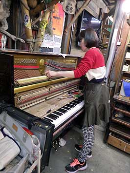 ピアノを寝かす、キャスターはさび付いて緩んできている とにかくカビがすごいところだ