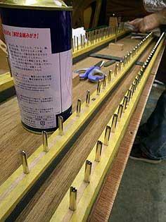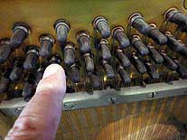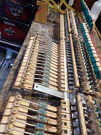 けん盤軸となるキーピン関係普段はけん盤の下にかくれてしまっているところなので見えないところだが