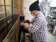 ヒンジビスは緑青で錆びつき始めている 途中でびすが折れることしばしば。ピアノは組み立てるほうが楽なのだ