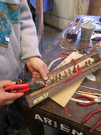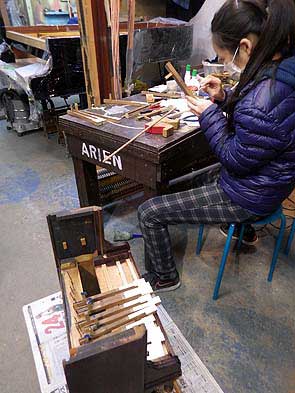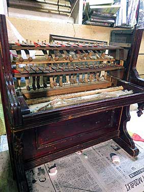 弦・・ではなく弦に変わる鉄琴細かいパーツを元位置に戻すべく作業取り外し