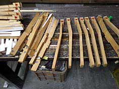 鍵盤木口カットと鍵盤バフがけ、鍵盤表面には細かい爪傷が無数についていますそれをきれいに取り去ります