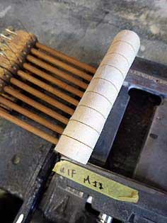 アクションハンマートップにも深く弦溝がつく ふれんじコード系はすでに切れてしまっているアクション分解
