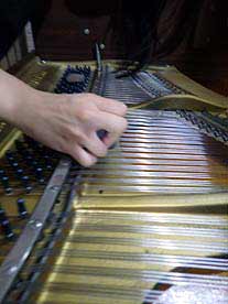 弦の磨き、ピアノは寝かすと見えなかった部分まであらわに見える