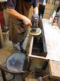 バフがけ機械できれいに傷をとるただし深い傷を追い込むと下地が出てしまうので注意が必要だ