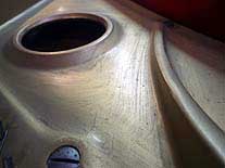 赤だけに傷が目立たないがかなり傷が多いところだ、年数相応と言えばそれまでだが磨けば綺麗によみがえりそうだ