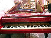 フレーム系はよごれている赤い珍しいピアノですね。