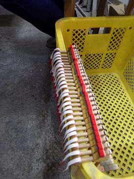 鍵盤ブッシングクロス交換鍵盤裏返すと赤いクロスがあるこれが猛烈にすり減っている