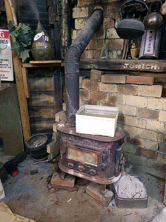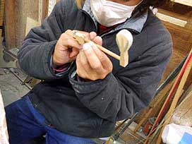 隣にベースをおく福ちゃんが木からくりぬいてすべて