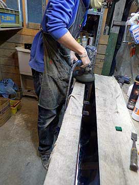 木目がキレイに現れたぞ〜いい感じだ、早急に作業、乗りはじめたら止まらない