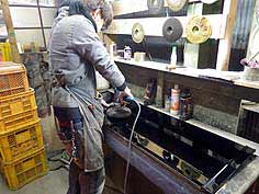 ハンマー整形ファイリングここはナベサンの仕事、普段は他のことやっているがファイリングだけは譲らない〜〜実にうまい