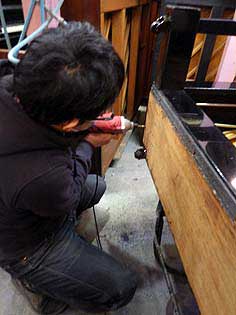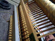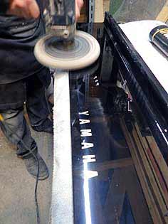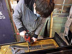 ピアノを寝かすと見えなかったところまであらわに見えるこの時こそ見逃しのないように磨きこんでいく