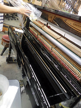 渾身のみがきを見せる健太ピアノ磨き準備