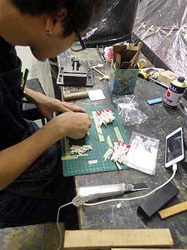 チューニングピン磨きと弦磨き作業