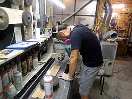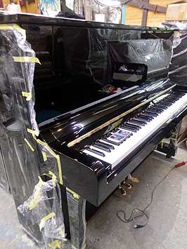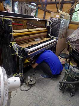 ピアノ本体を磨くべくピアノを寝かして外装関係チェック