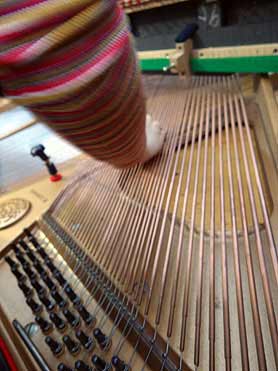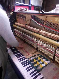 先ず調律時狂い安いところと弦がすでに一度切れている周辺チェック短駒のチェック 鍵盤ブッシング系ががたがたなので貼り替え