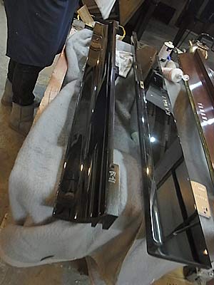 けん盤蓋は奥丸と手前けん盤蓋をつなぐヒンジを外してばらした状態で磨いていきます