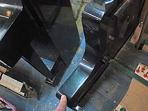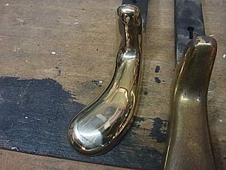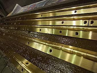けん盤蓋天屋根から外されたヒンジは磨いた後塗装が施されます