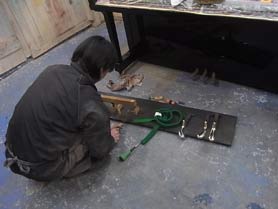 けん盤バフがけ作業 鍵盤表面いついた爪傷細かい擦り傷汚れ等をバフできれいに落とす