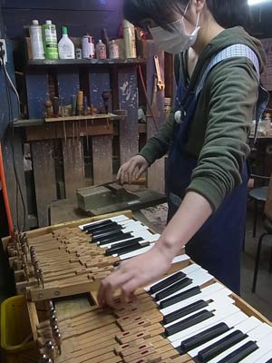 大山さアクション整調作業開始鍵盤上面ならし作業 ピアノは全てここから働き運動量