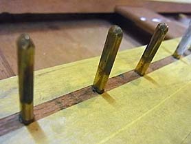 けん盤を上げるとキーピンが見える このキーピンピアのタッチ感触で大きく影響するところでもある