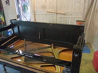 腕木とピアノ本体側面カビで白く・・・・・・・・