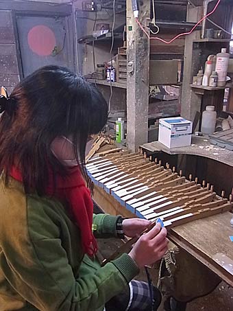 弦磨き作業