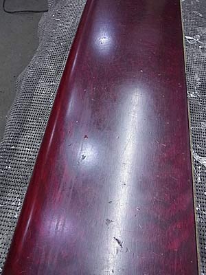 もともと艶ありのワイン きれいな木目が出ていたはずのピアノ傷等汚れでくすんでしまった