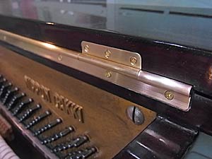 ピアノ大屋根手前側の鍵穴がつく屋根