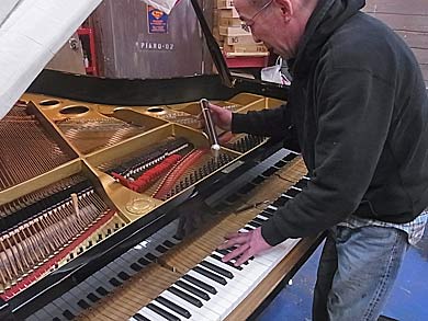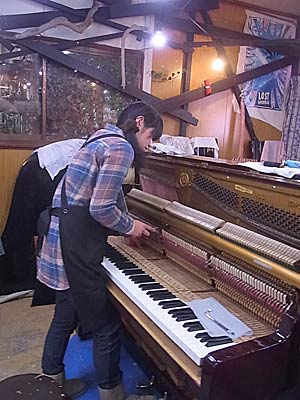 調律しながらぶつぶつ言っている