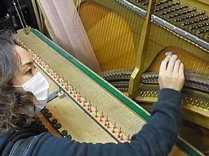 ハンマー整形 弦溝を削除して元の新しい状態に戻します 音色は大きく変化します 剥き方一つで音色も変わるために
