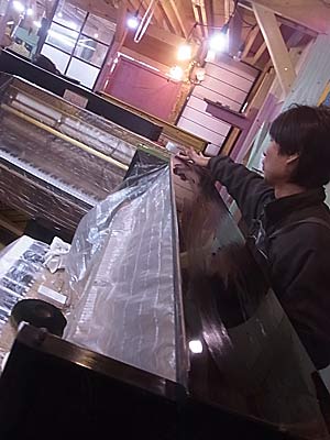一番傷が多いけん盤蓋みがきに余念がない木村君 丁寧に磨き上げていく