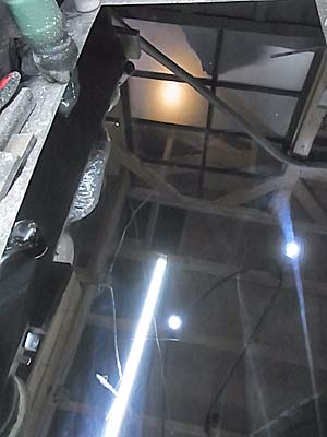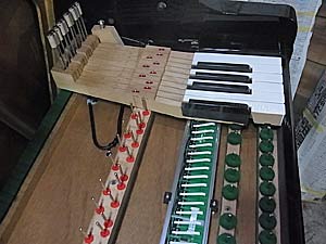 鍵盤木口交換 新品木口はブルーシートで傷がつかないように