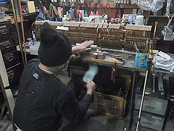 けん盤バフがけ作業 鍵盤表面いついた汚れ傷等をきれいに削除します