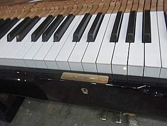 鍵盤は柾目でできている表面はアクリル 木口はセル系の柔らかい物 湿気等で鍵盤は動くところを木口で干渉させる役目もあるのだ