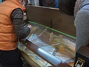 けん盤蓋内側 弾いた爪キスが多数前蓋につく 弾いていた証拠でもあるのだ。 この傷も今回きれいにしたい