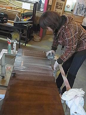 ペダル窓クロスも新品に交換します古いクロスは取り除きます