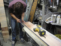 ワインの艶あり極力木目を殺さずに色合わせしていきたいと思います、