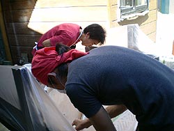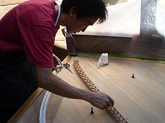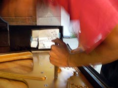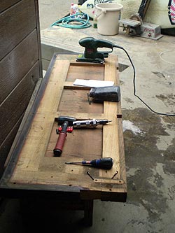 ブッシングクロスの張替え準備、ふるいクロスを剥がします