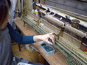 アクションを1個1個ばらし細かいパーツの磨耗をチェックし交換していきます