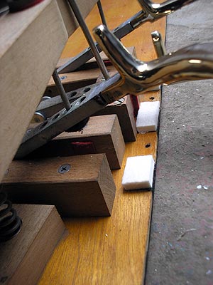プレッシャーバーを取り付けに入る(弦枕を忘れずに)