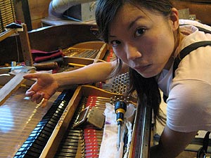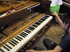 ピアノの下にもぐりこんでの作業です
