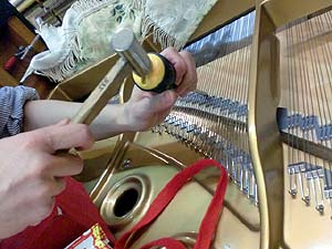 弾き手にとっても直す側にとってもこれで最後の修理、くいのないように的確な修理を施していきます