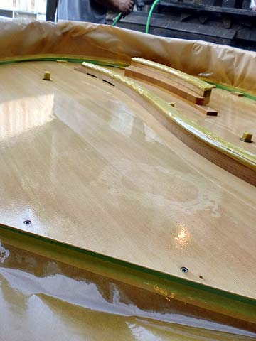 マスキング、響板のマスキングは通常のものと少し違うのです。下塗りと本塗りが分かれます
