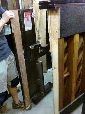 側面の板だ、この板が剥がれ落ちるとピアノは倒れる