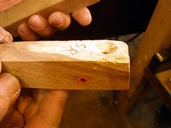 で、その後この金属を抜き、スプルースで穴を完璧に埋木をする、