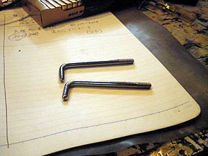 プレッシャーバー取り付け、ネジも長く細い、蝋ですべりを良くしてねじ込んでいく
