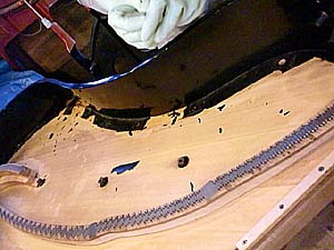 ポイントは棚板と筬の間に隙間があるとタッチにしまりがなくなり、アクション運動にもロスを招きタッチに応じた発音が得られなくなるのだ